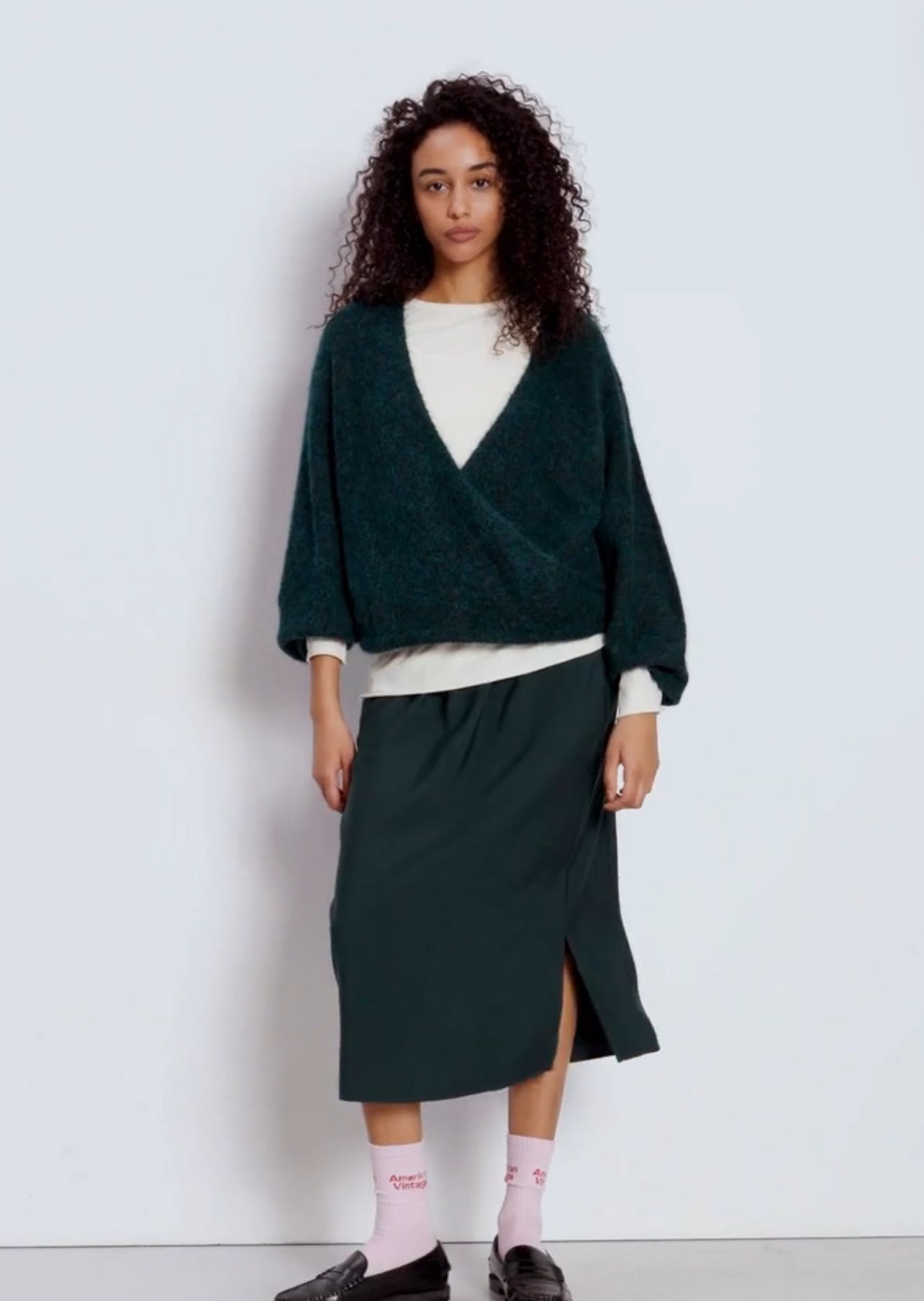 Crafted from a two-ply knit, the Niby women's crossover neck jumper is thick and warm with its alpaca blend knit. Its ball shape and crossover neck make it a very feminine and easy-to-wear piece as it suits all body types. Ultra-soft and comforting, it can be worn with jeans, a skirt or leggings.