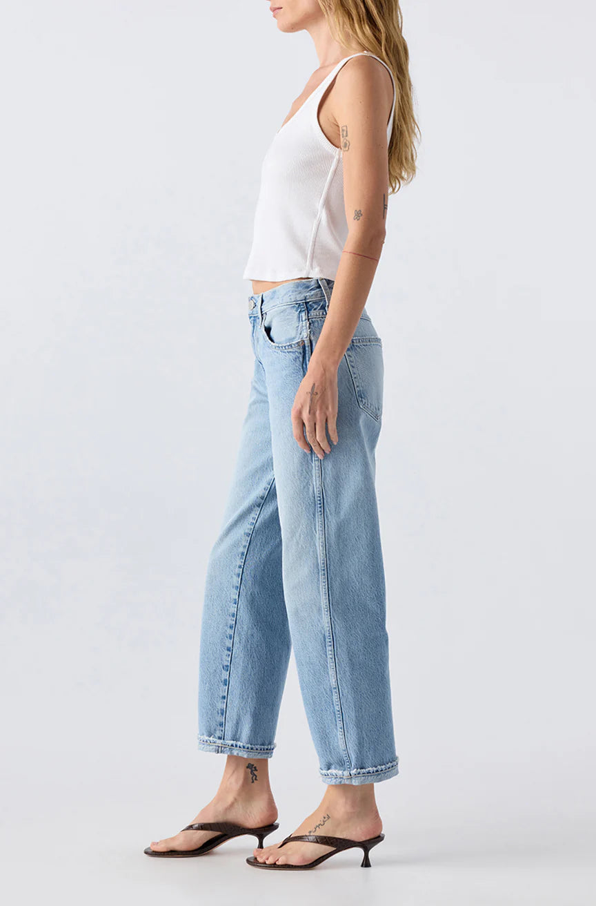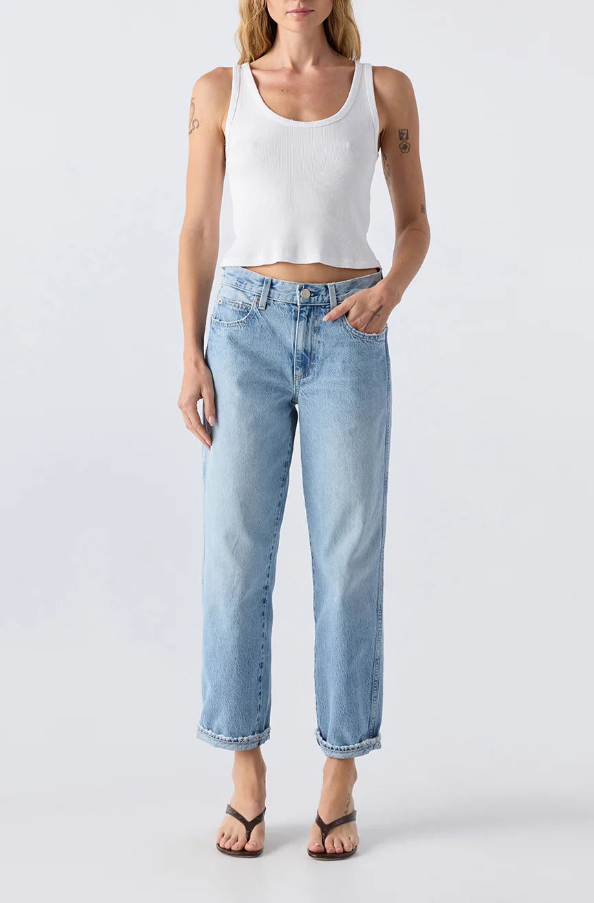 Meet your new favorite mid rise, relaxed straight leg jean. Inspired by our best seller, the Billie, these jeans feature a more oversized fit as well as a slightly tapered and rolled leg. A fresh twist on a classic fit. Zip fly.