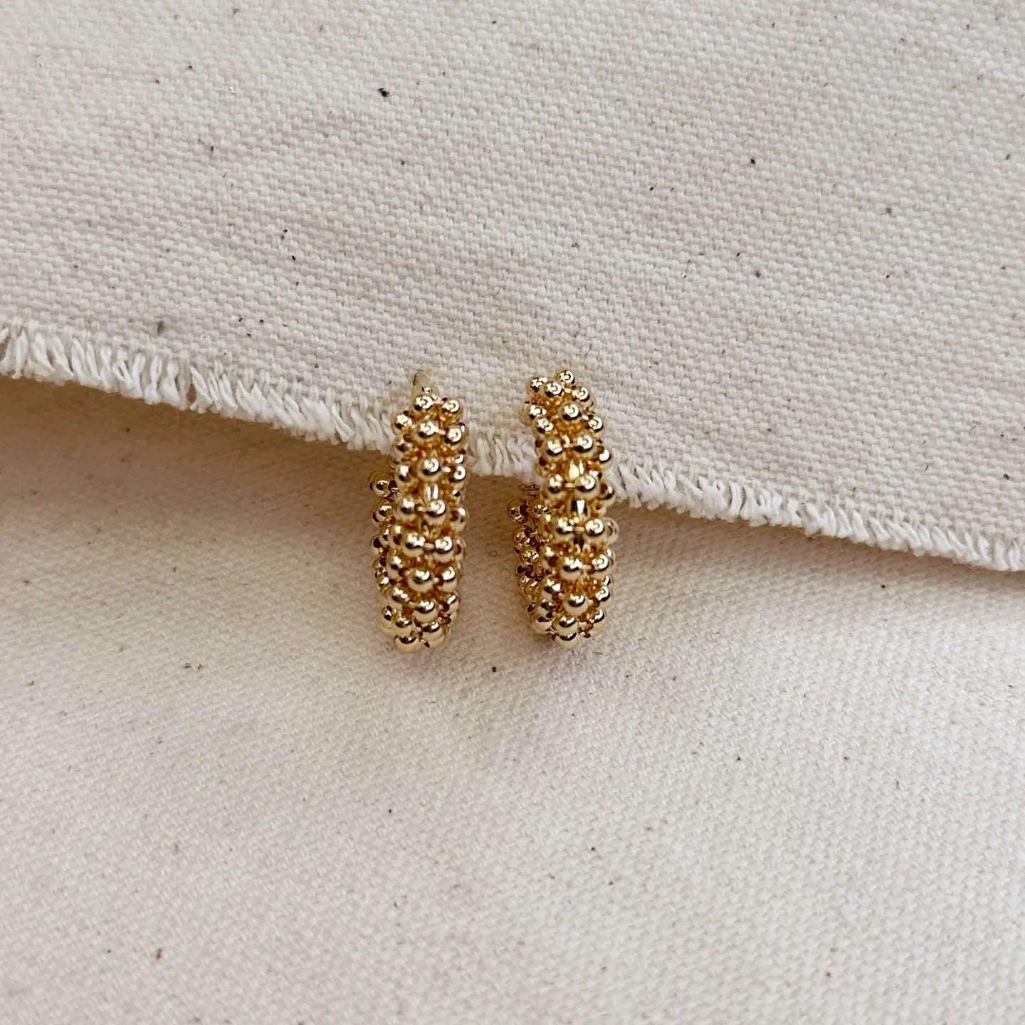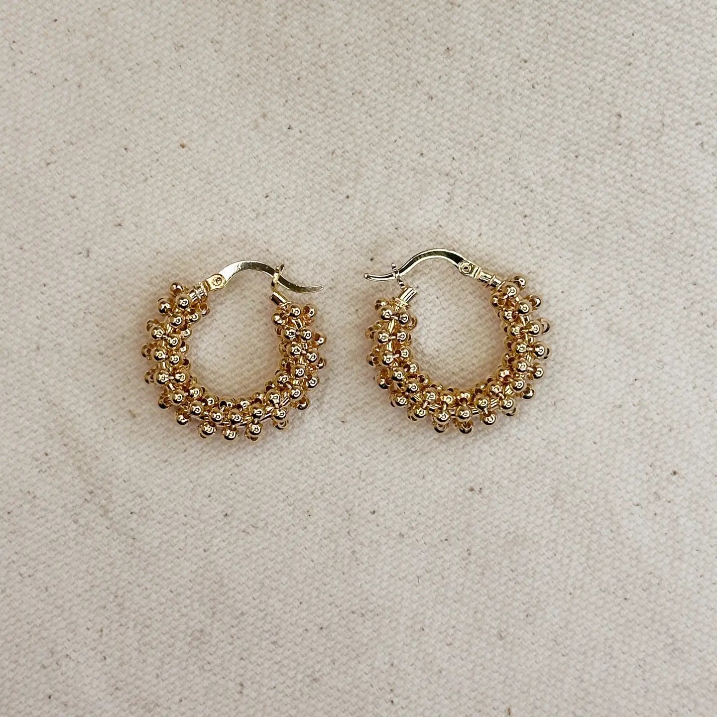 Indulge in timeless elegance with our 18k Gold Filled Beaded Cluster Hoop Earrings. These classic yet fun earrings showcase exquisite craftsmanship, making them the perfect accessory for any occasion. Add a touch of luxury to your wardrobe and elevate your style with these stunning hoop earrings.