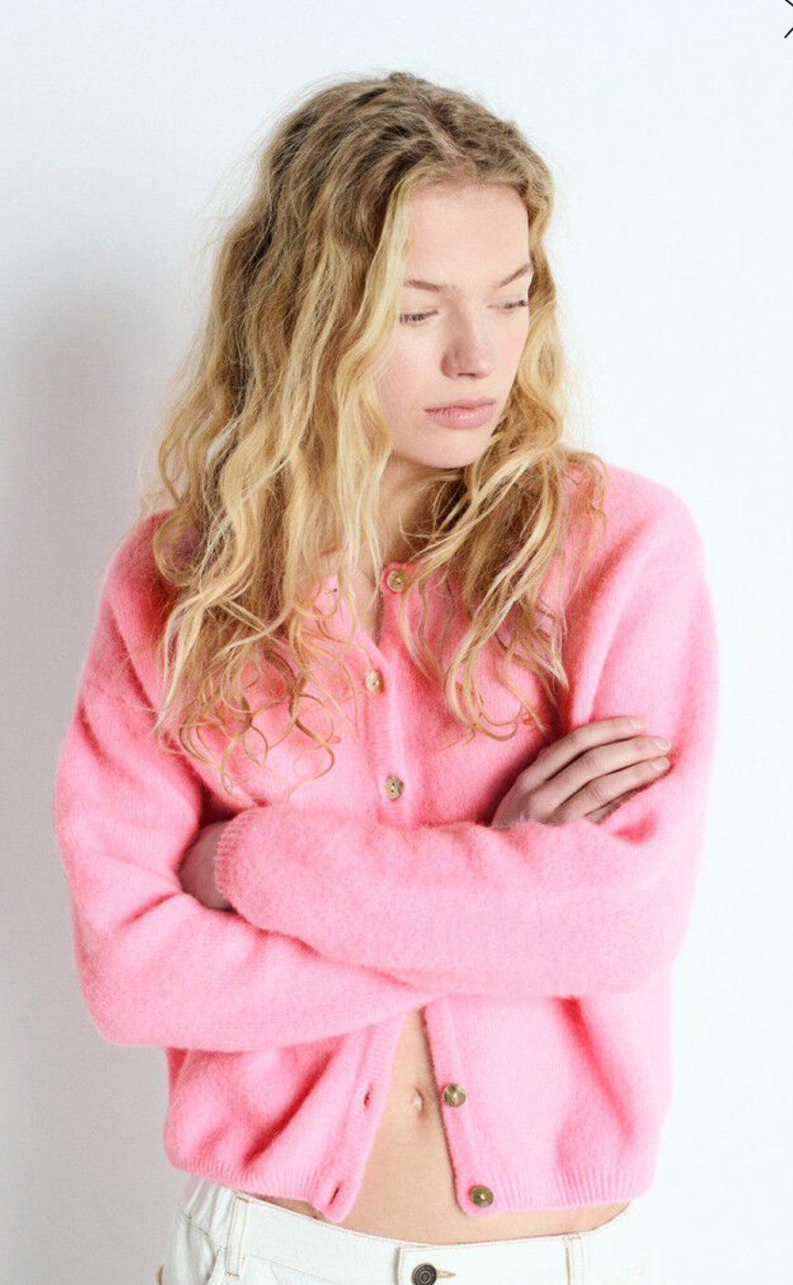 DETAILSShort Cardigan with Long Sleeves and Round Neck