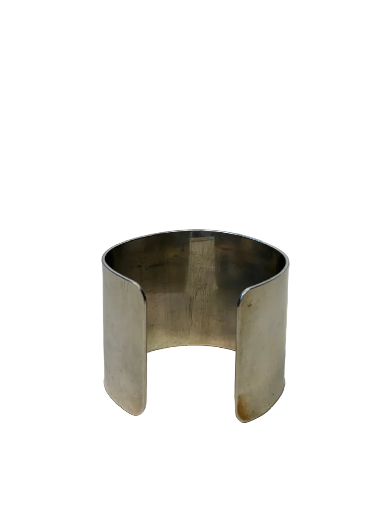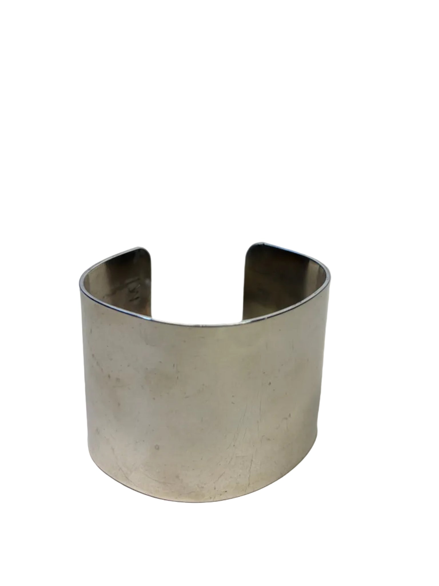 The substantial width gives it a bold presence on the wrist, yet the open cuff style ensures a comfortable, adjustable fit. Clean lines and smooth edges make it perfect for both everyday sophistication and elevated evening wear.